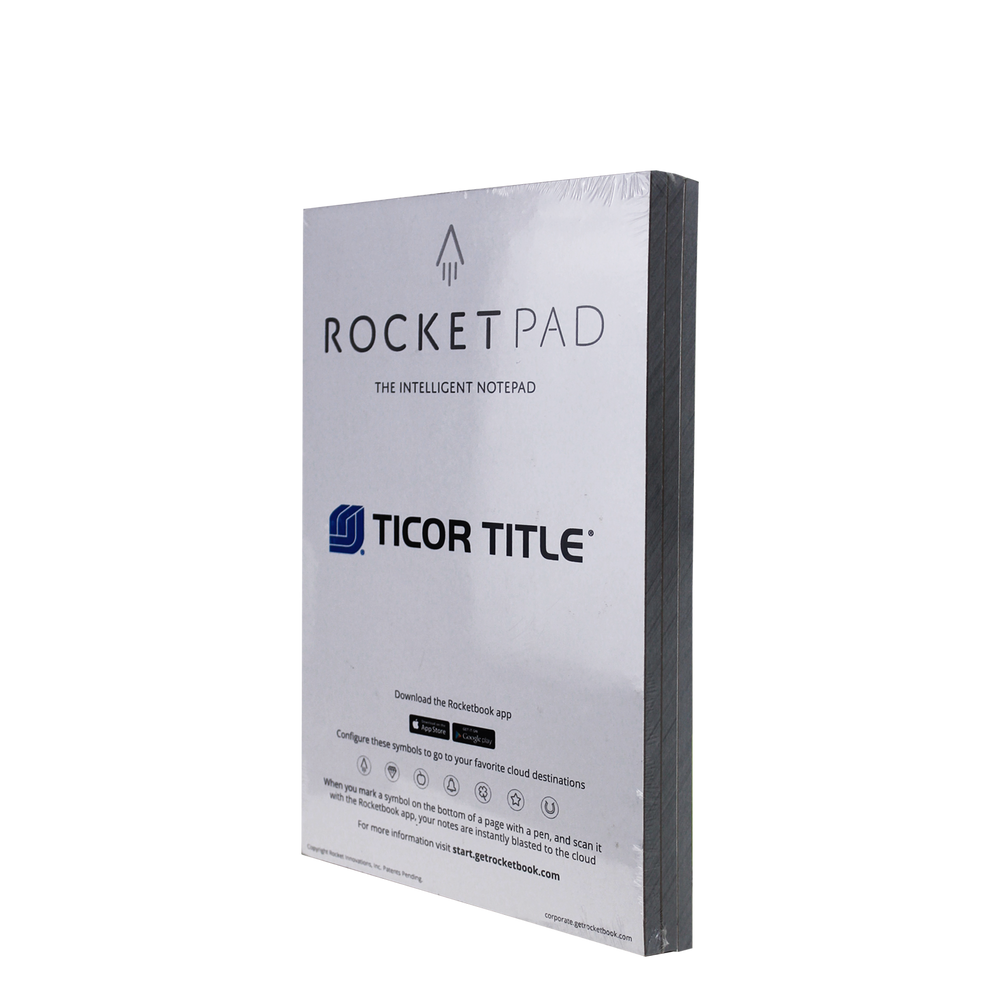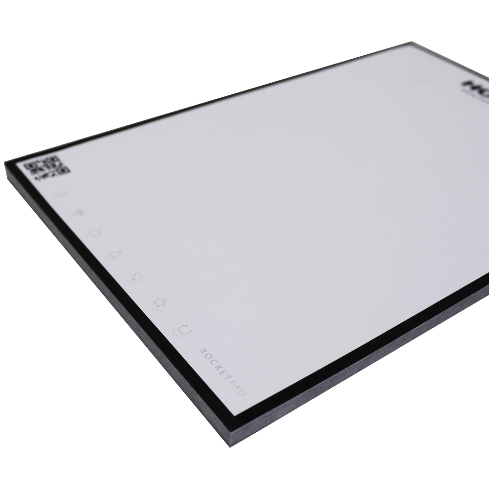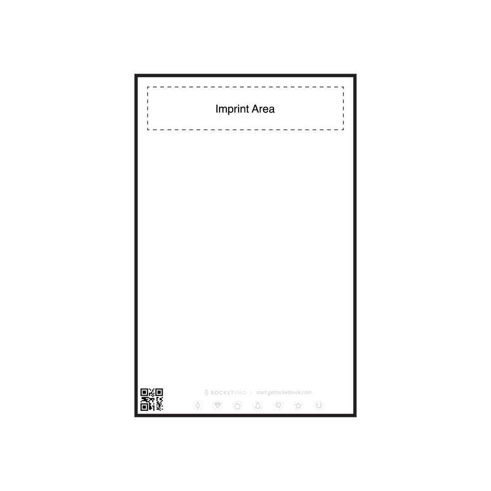 The Rocketpad is a single use tear-away style pad which is compatible with the Rocketbook app. Rocketpads are great to keep on your desk or in your kitchen for notes on the fly. Decorated pads come with a full color logo on the header of the pad as well as on the cardboard backer of each pad. Each Rocketpad is 5.25 in x 8.25 in with an imprint area of 4 in x 1 in.