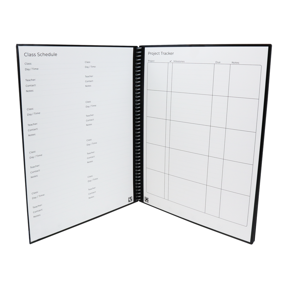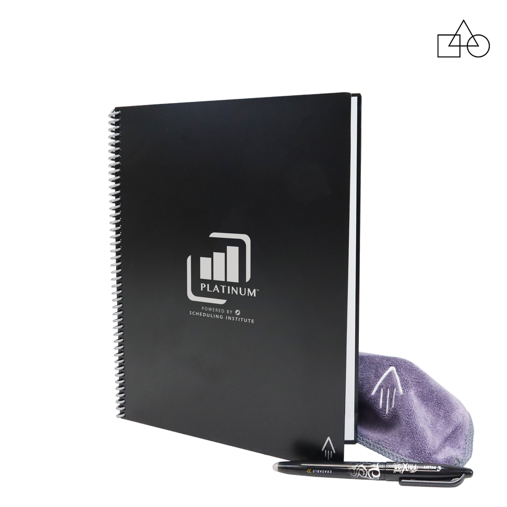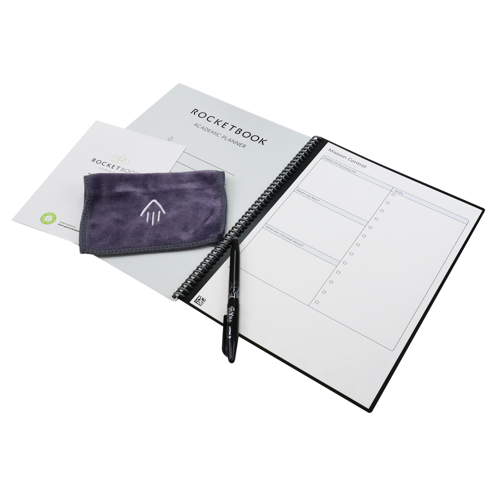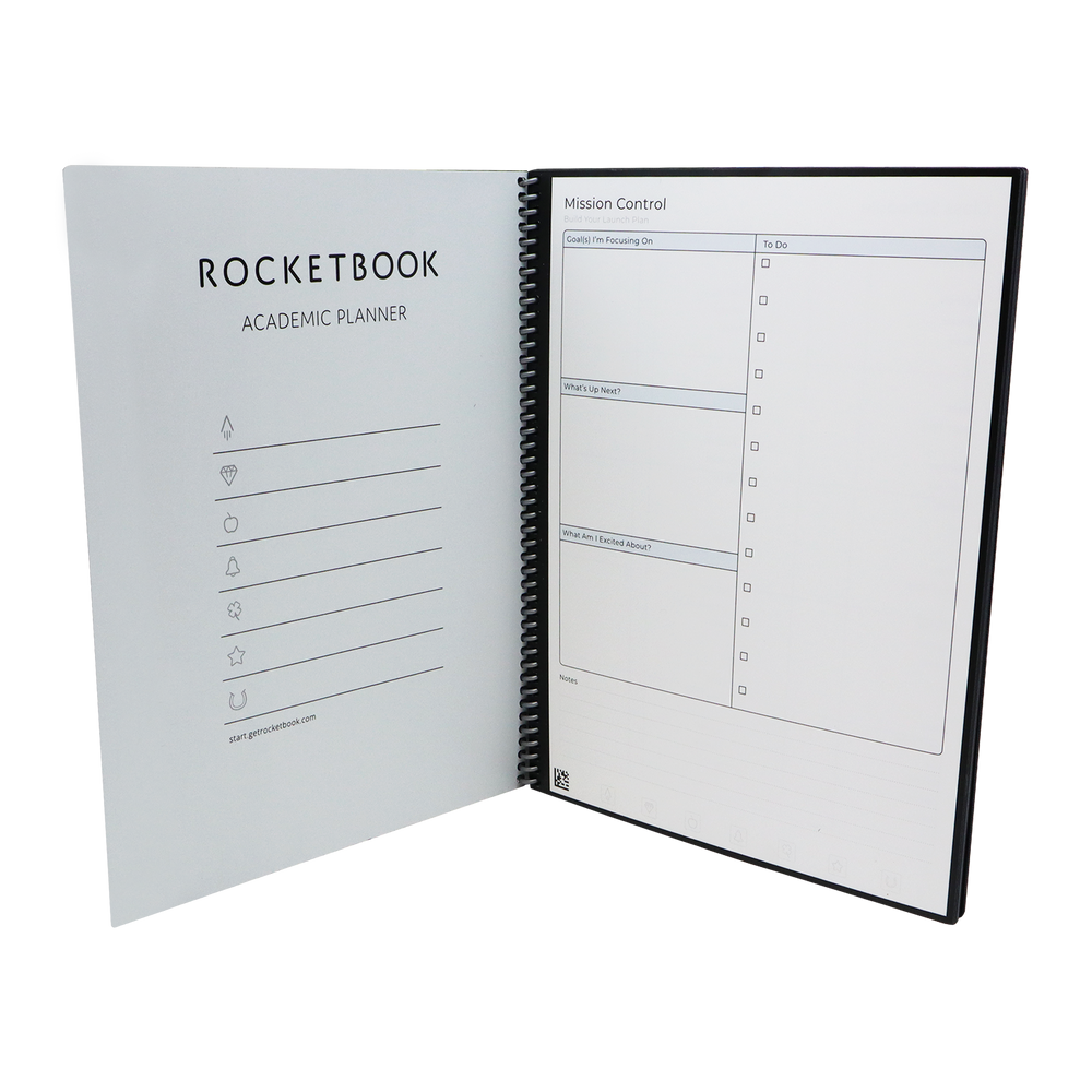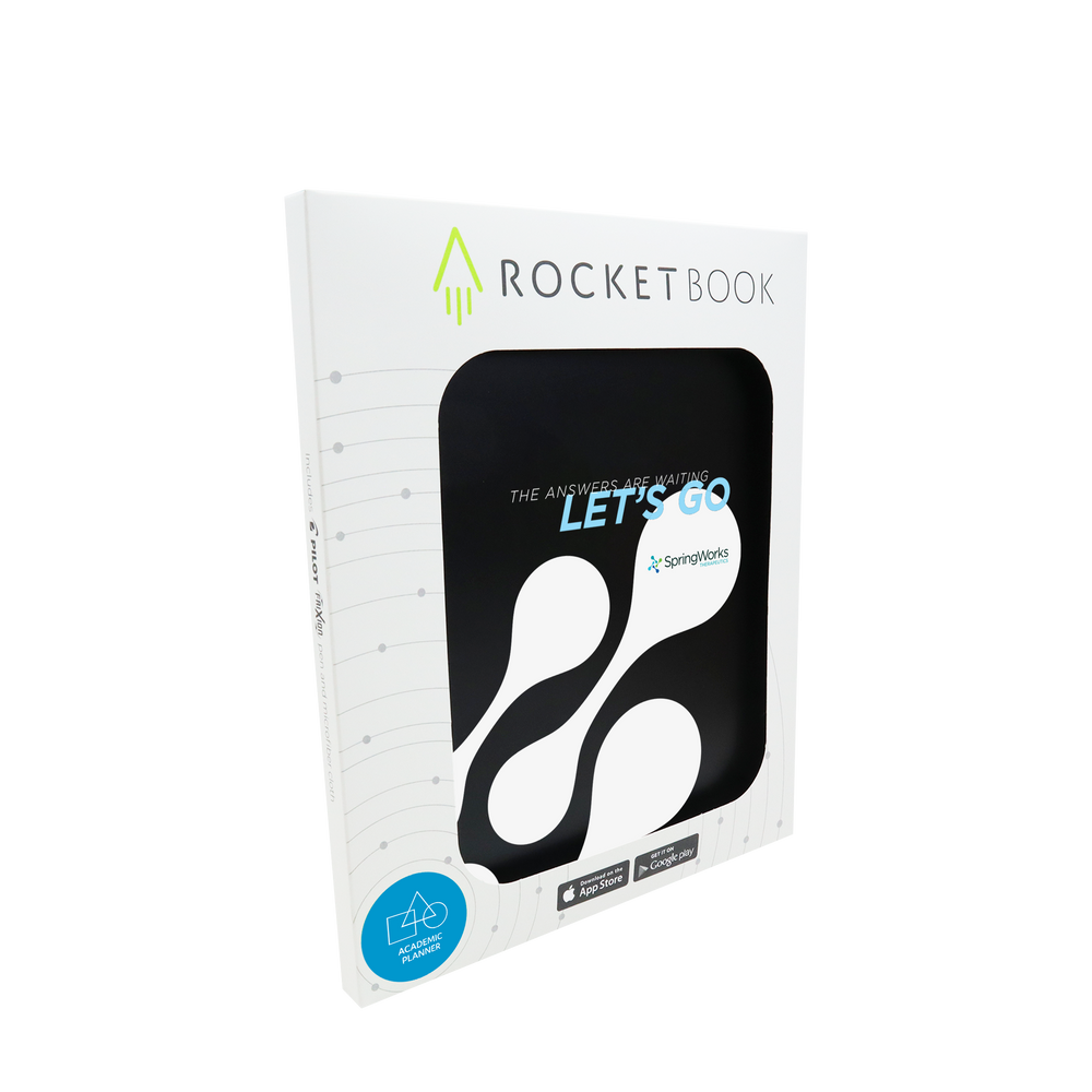 The Rocketbook Academic Planner is designed for students and approved by teachers, it is equipped with 13 different page types to give you extra credit in the classroom. Can be used to manage class schedules, weekly goals, daily workloads, and more. The Academic Planner has innovative synthetic paper that allows you to write smoothly with a Pilot FriXion pen. Use the Rocketbook App to blast your notes to the Cloud then magically wipe your notes clean with a damp cloth. Erase and reuse to get straight A’s semester after semester after semester after... Then there is the cherry on top... custom printed covers! Let's get your custom branded Rocketbook Academic Planner started today.