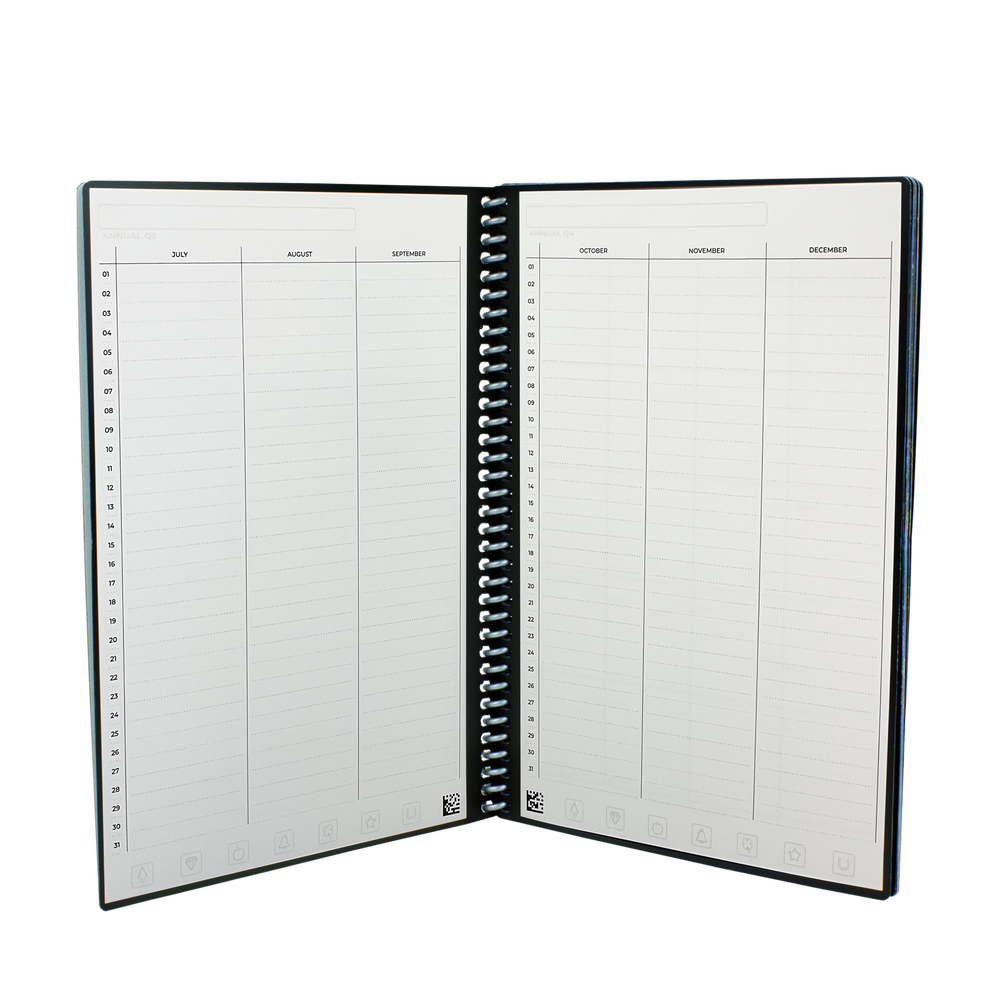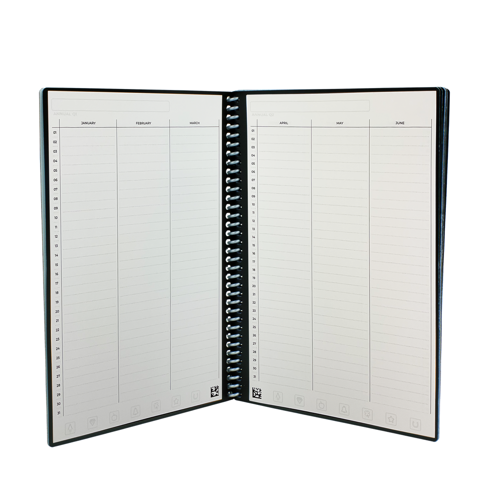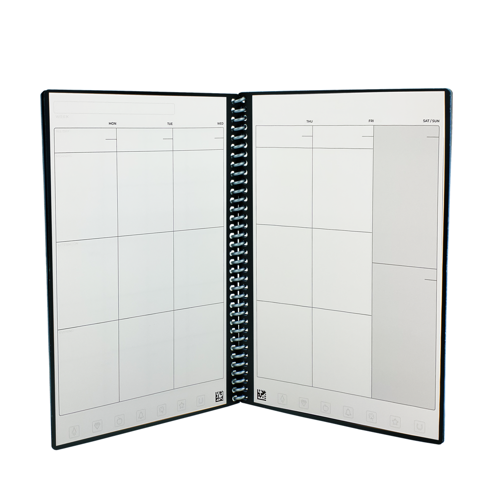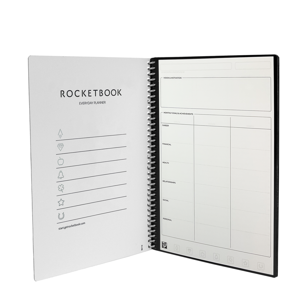The Everyday Planner is the galaxy’s first guilt-free planner. With minimalist templates and undated pages, this planner fully adapts to your planning style - meaning you can skip days, weeks, or months without judgement or wasted pages. Like other Rocketbook notebooks, this planner works with the Rocketbook app to save digital copies of your plans, share notes, and create digital checklists. Write with any Pilot FriXion pen, then magically erase your pages with water to reuse the Everyday Planner until 2080. We know you've got plans - now get to it!