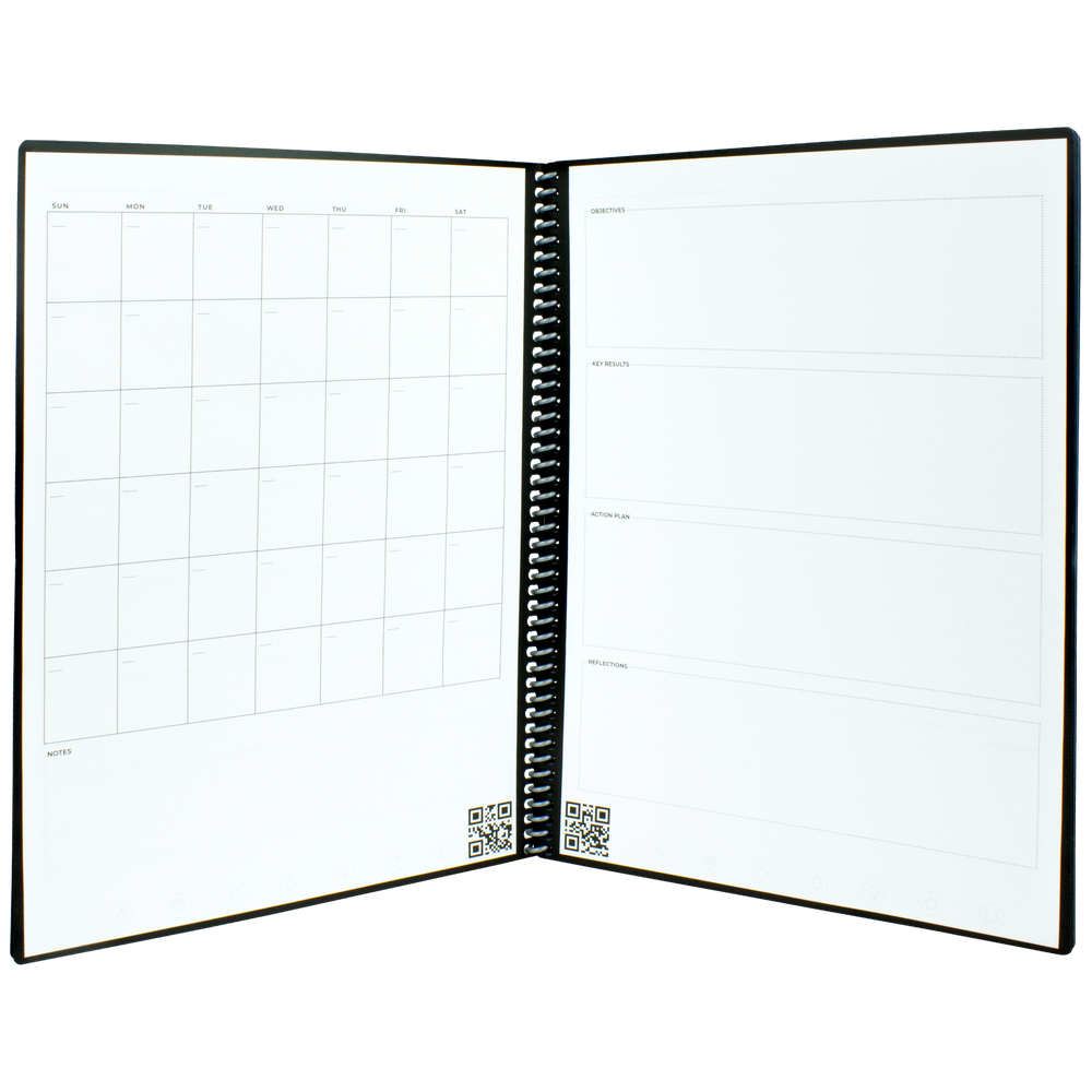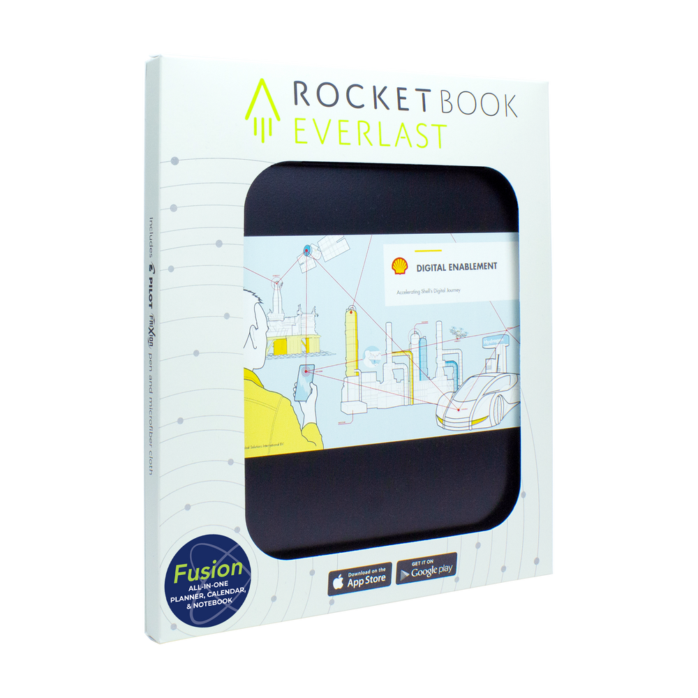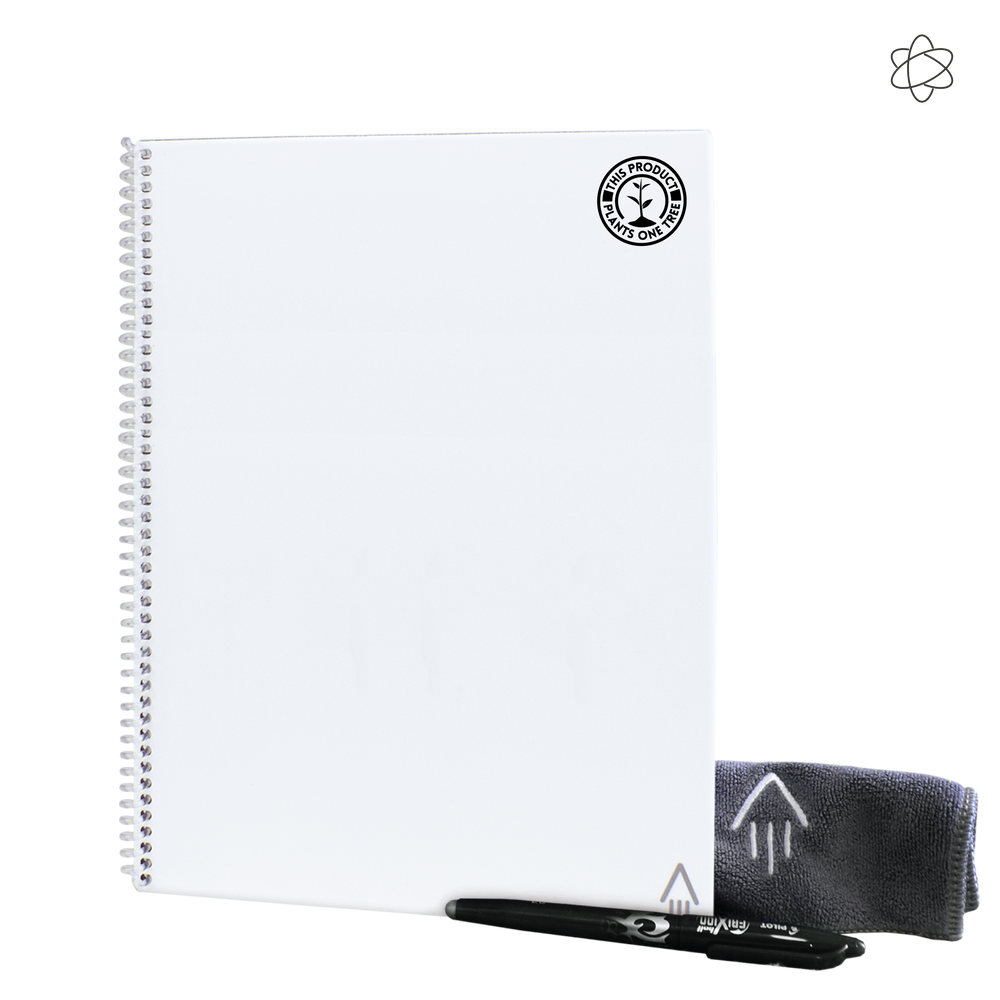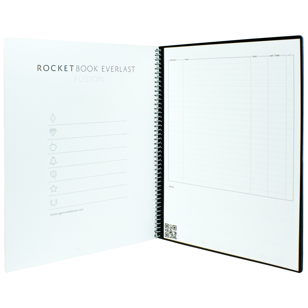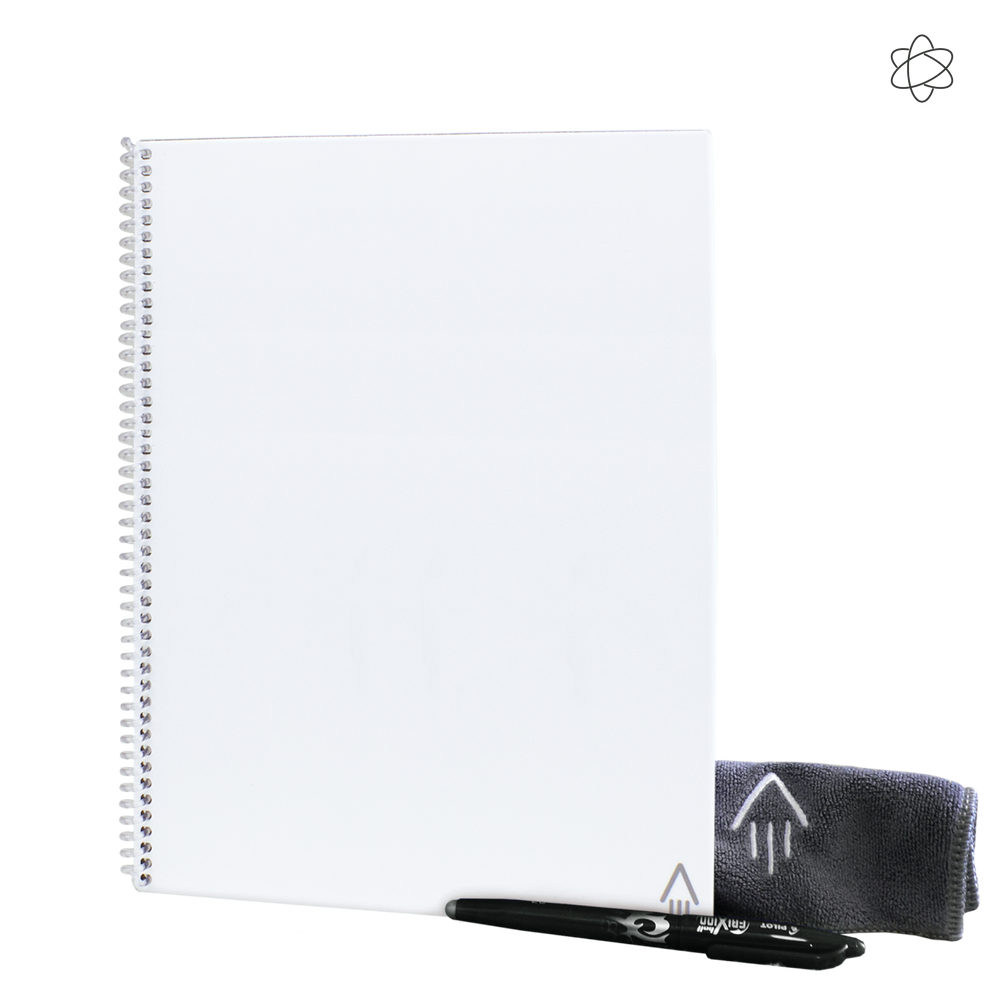 The Rocketbook Fusion Letter is designed for any and every classroom, office, and personal mission. Like it's brother, The Core, The Fusion is a reusable pen and paper notebook with seven different page templates that connect to your favorite cloud services. The biggest difference is that the Fusion has 42 futuristic pages that are packed with calendars, to-do lists, and notetaking layouts. The synthetic paper allows you to write smoothly with a Pilot FriXion pen, then magically wipe clean with a damp cloth to reuse again and again! Use the Rocketbook app to blast your notes, plans, lists, and big ideas to the cloud for proper organization. Then, erase and reuse your Rocketbook Fusion for your next adventure!