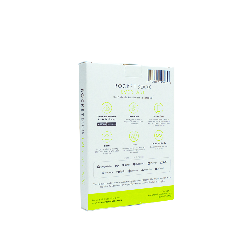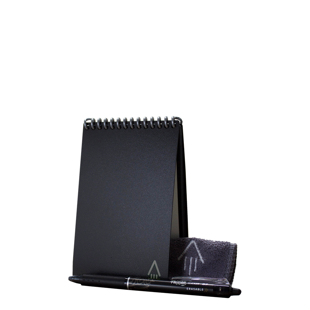 The custom branded Mini notebook provides a classic pen and paper experience, yet is built for the digital age. Although it feels like a traditional pocket-sized notebook, the Mini is endlessly reusable and pairs with the Rocketbook app to connect to all of your favorite cloud services. When you write using any pen from the Pilot Frixion line, your writing sticks to Rocketbook Mini pages like regular paper. But add a drop of water… and the notebook erases like magic. The Mini is designed for those who are on-the-go but want an endlessly reusable notebook to last for years, if not a lifetime. The Mini has pages made with synthetic materials that provide an extremely smooth writing experience. Get a logo on some Rocketbook Minis today.