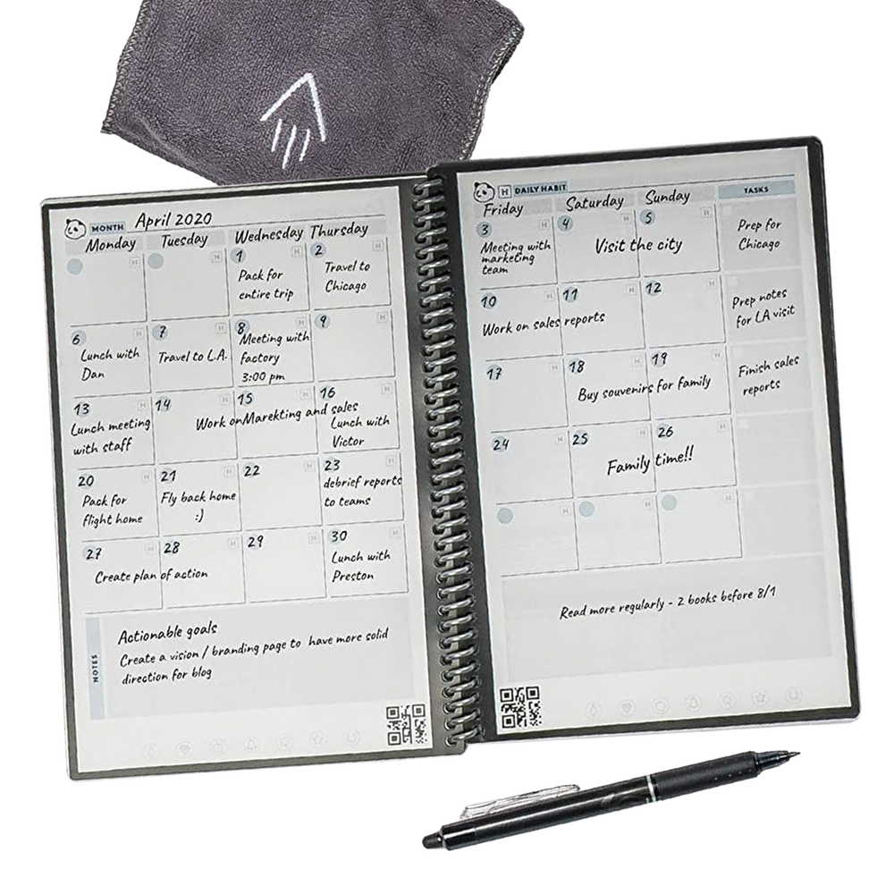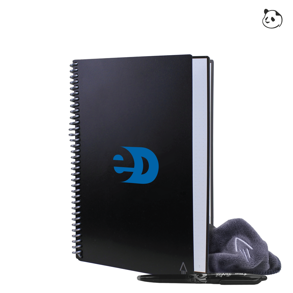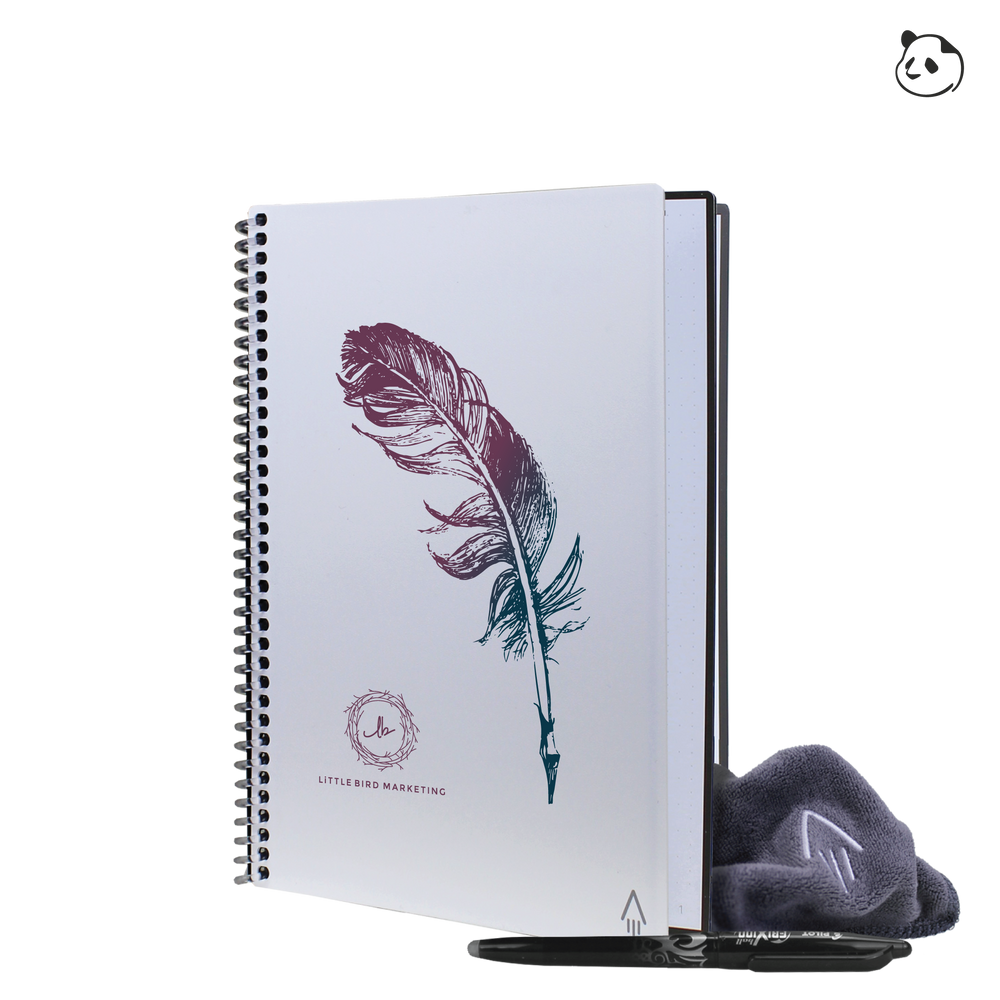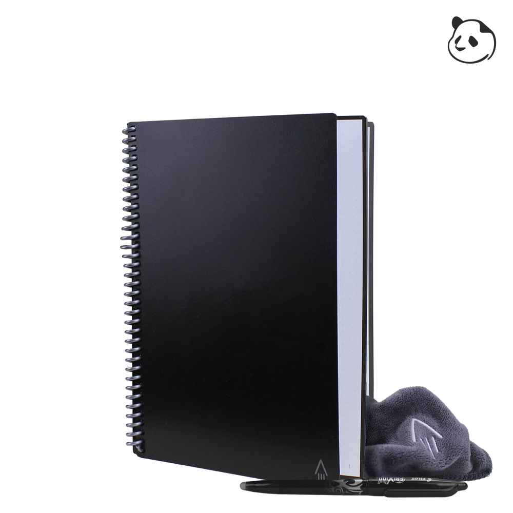 Good planning is a part of any good business. Rocketbook has partnered with our friends at Panda Planner to combine inspiration with innovation. Find inspiration in the Rocketbook Panda Planner’s reusable monthly, weekly, and daily planning pages which help anyone take back control of life, one page at a time. Rocketbook's innovative synthetic paper allows you to write smoothly with a Pilot FriXion pen on the ultimate planning templates of Panda Planner, then magically wipe your planner clean with a damp cloth to crush your life goals year after year. These two together give you the Rocketbook Panda Planner executive sized reusable notebook planner. Now you can brand them for any company with their logo.