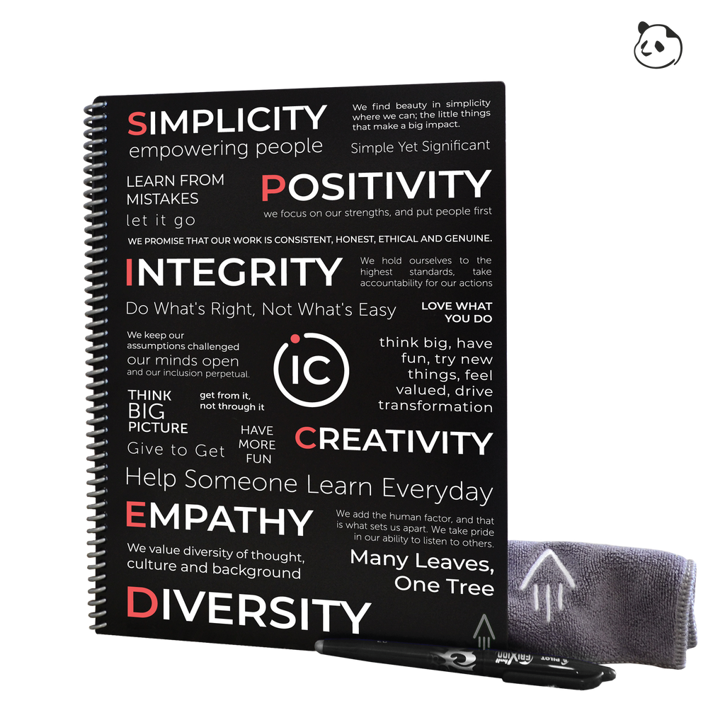 Good planning is a part of any good business. Rocketbook has partnered with our friends at Panda Planner to combine inspiration with innovation. Find inspiration in the Rocketbook Panda Planner’s reusable monthly, weekly, and daily planning pages which help anyone take back control of life, one page at a time. Rocketbook's innovative synthetic paper allows you to write smoothly with a Pilot FriXion pen on the ultimate planning templates of Panda Planner, then magically wipe your planner clean with a damp cloth to crush your life goals year after year. These two together give you the Rocketbook Panda Planner letter sized reusable notebook planner. Now you can brand the letter size for any company with their logo.
