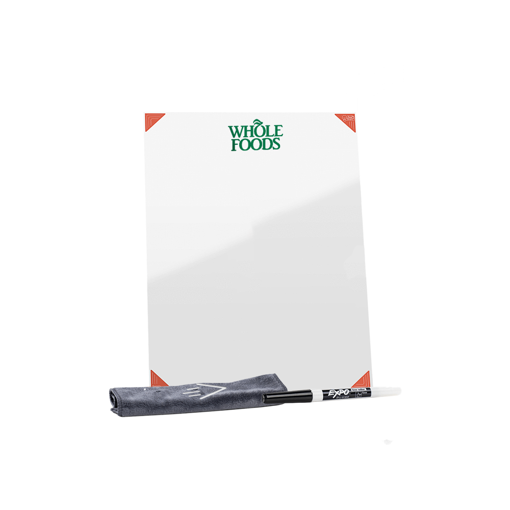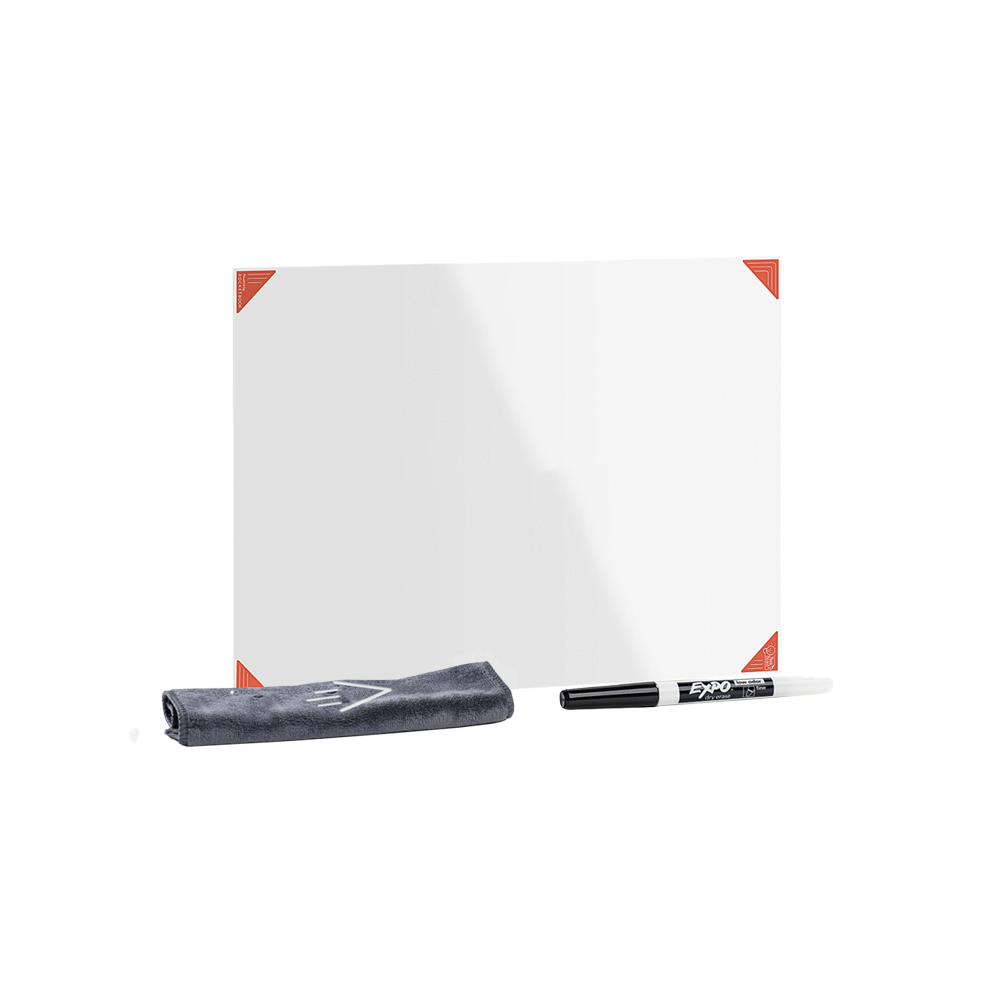NEW! A new and unique product now in the promo space to customize at will. Stick the infinite power of Rocketbook right onto your desk, wall, fridge, or any where else that has a smooth surface. Rocketbook has partnered with our friends at Think Board to bring you the Think Board X2. This small size peel-and-stick dry-erase surface comes equipped with built-in Rocketbook Beacons, so you can scan and send your notes to the cloud in an instant. Peel and stick the Think Board X2 to any flat surface, and use the free Rocketbook app to scan brainstorms, lessons, to-do lists, snapcasts, and beyond. The Think Board X2 - Small works with any dry erase marker and can be imprinted with a 1 color or full color.